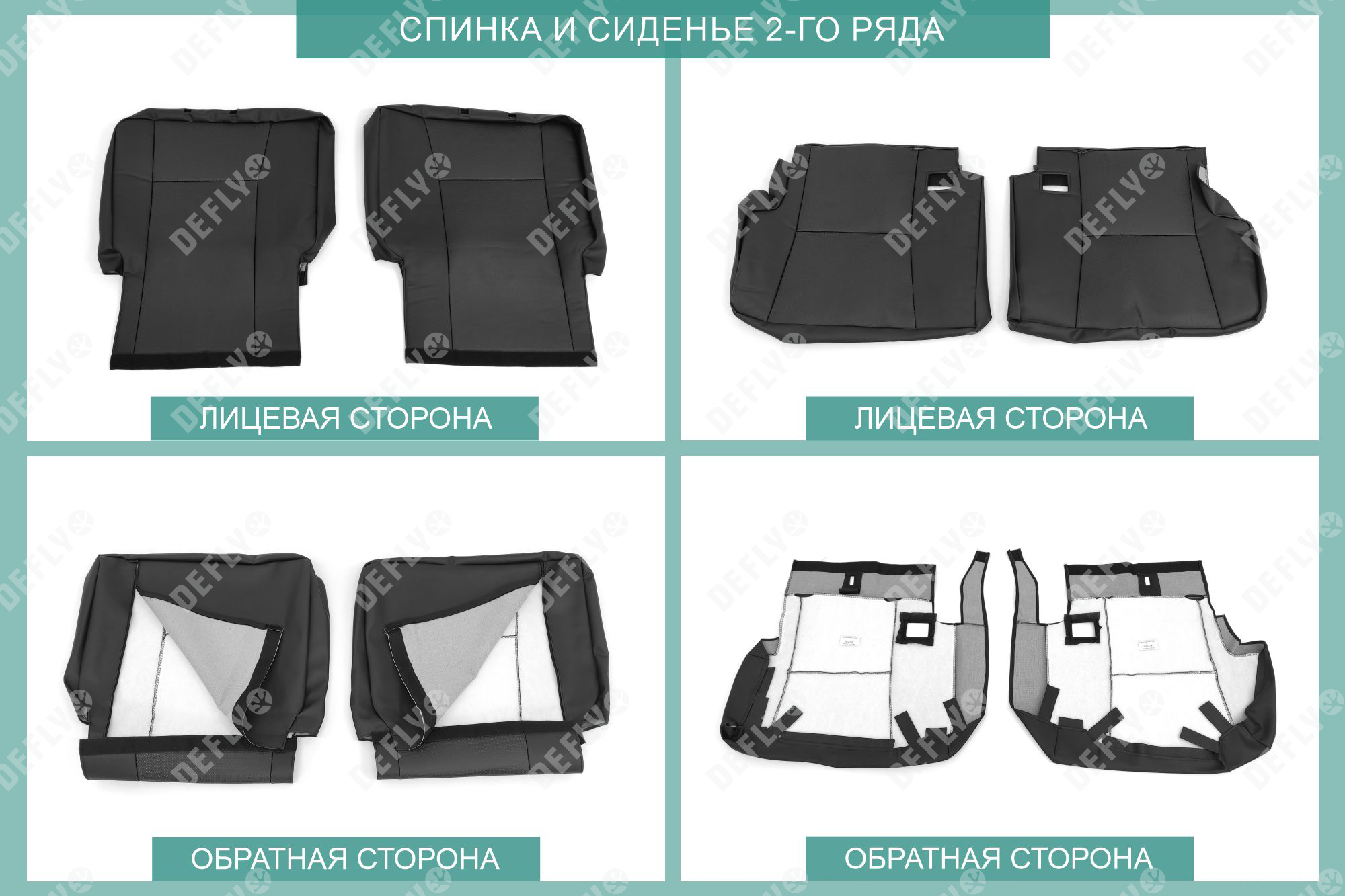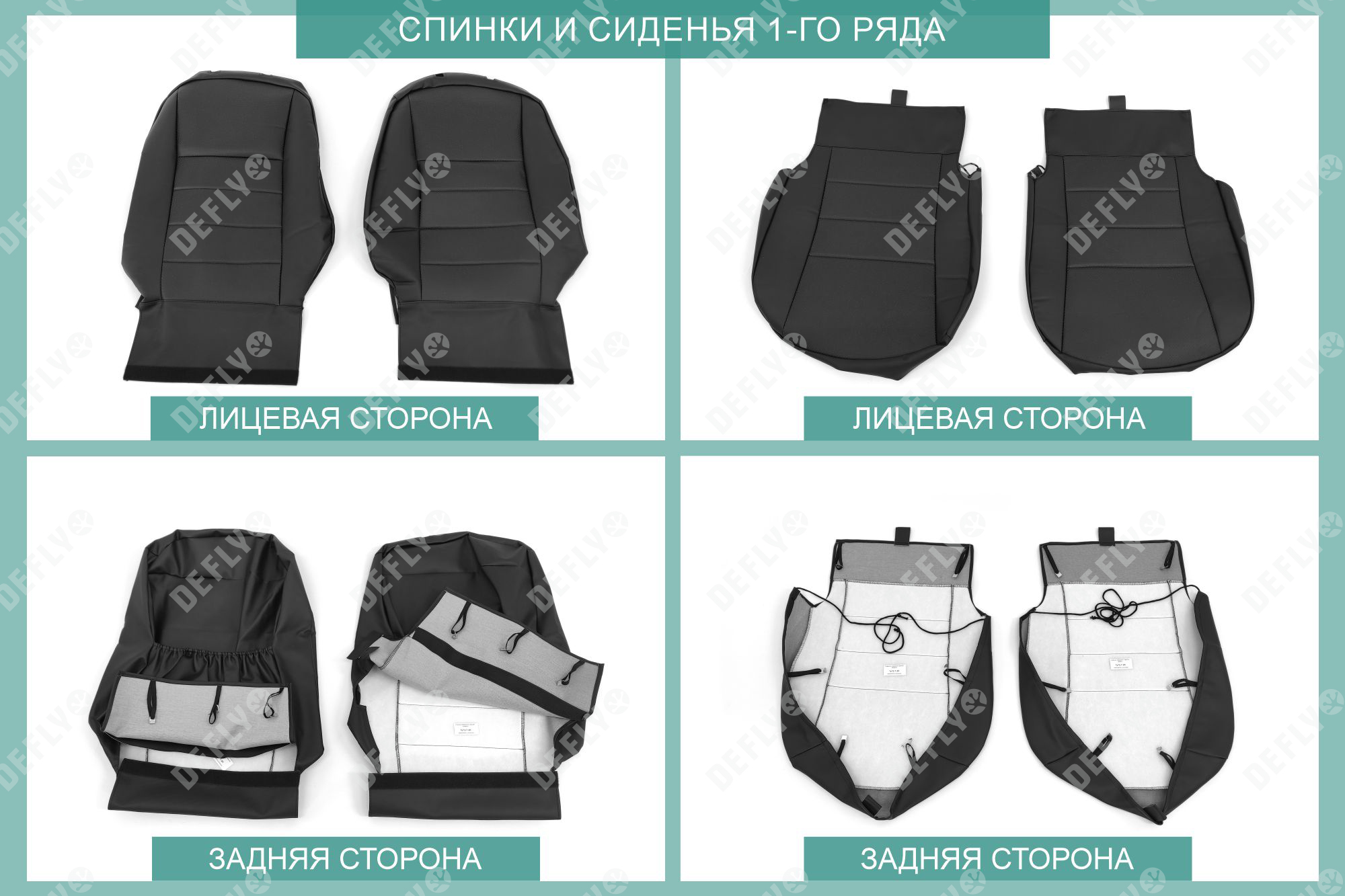 Материал: Экокожа гладкая, экокожа перфорированная, Цвет: Черный (оттенок ткани может незначительно отличаться). Модельные чехлы от производителя “Defly” индивидуально сконструированы для каждого автомобиля. Изготовленные по лекалам оригинальных кресел, чехлы гарантируют идеальную посадку. Все швы и технологические отверстия обработаны на оверлоке. Чехлы не ограничивают заводскую функциональность салона. Наличие в чехлах специального распускаемого шва не препятствует своевременному и полному раскрытию подушек безопасности. Специально разработанная система креплений позволяет надежно зафиксировать изделия. Авточехлы изготовлены из двух видов экокожи черного цвета: гладкой и перфорированной. Перфорированная экокожа используется в центральных элементах, что обеспечивает циркуляцию воздуха. * Представленные фотографии являются примером исполнения и служат для демонстрации материалов и конструкции чехлов.