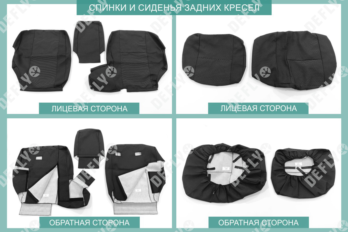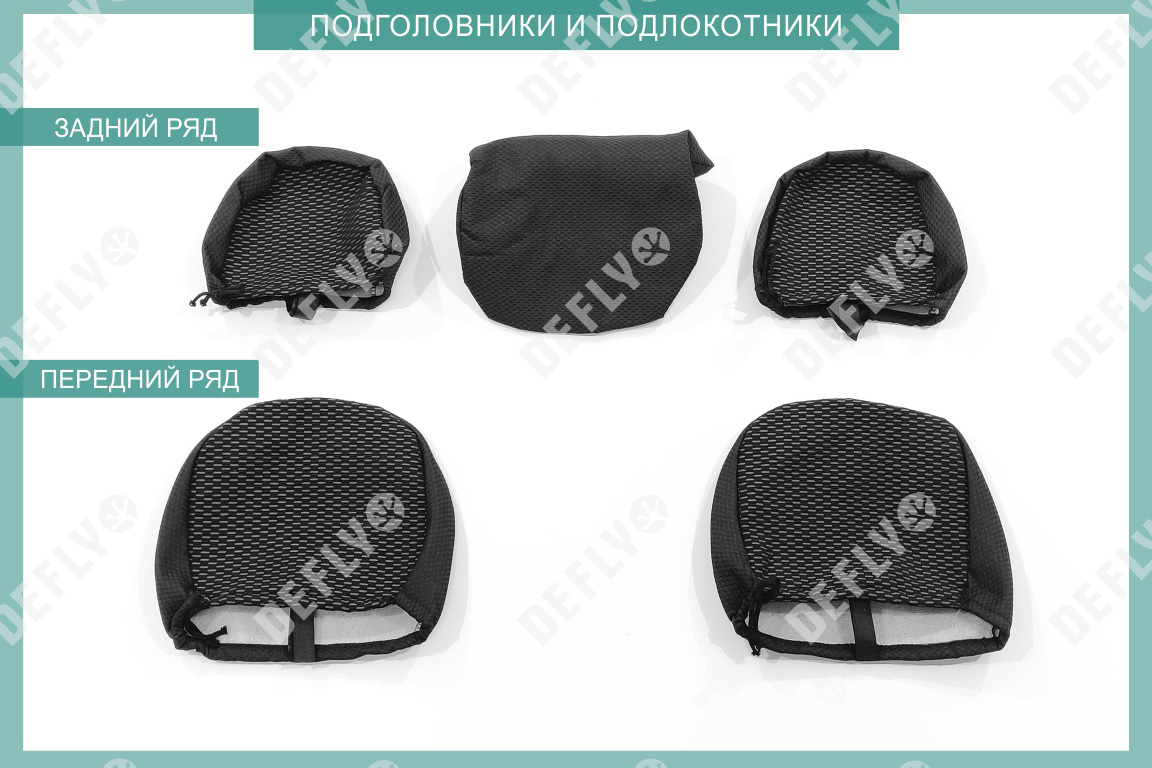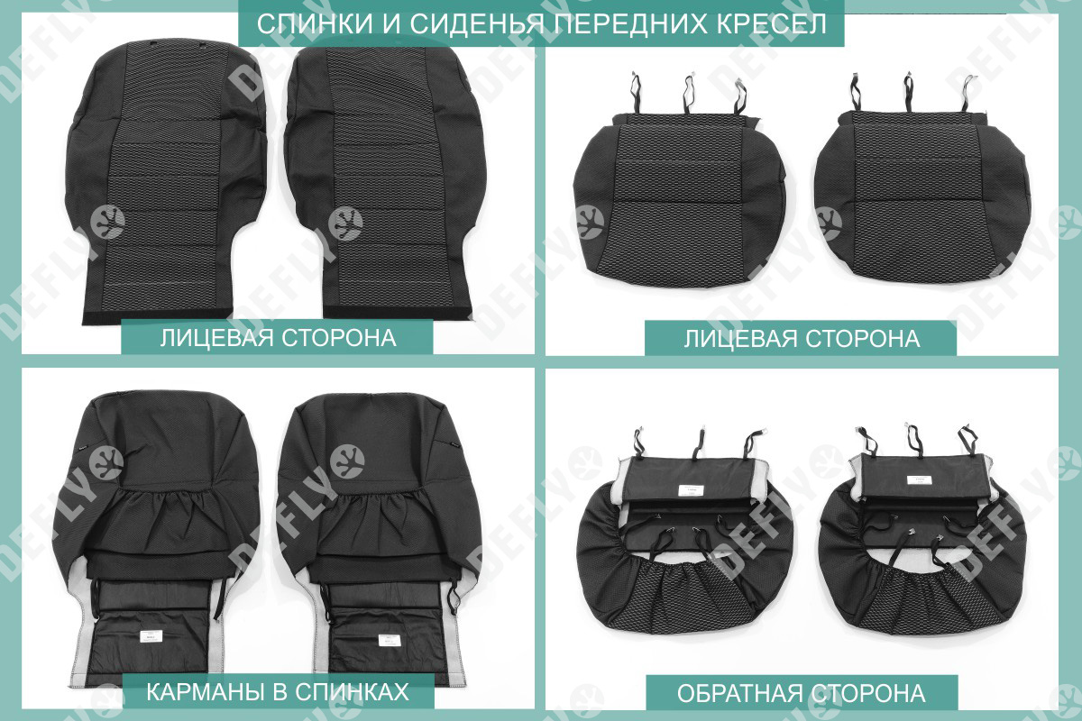Материал: Жаккард, Цвет: Черный и темно-серый (оттенок и рисунок ткани может незначительно отличаться). Модельные чехлы от производителя “Defly” индивидуально сконструированы для каждого автомобиля. Изготовленные по лекалам оригинальных кресел, чехлы гарантируют идеальную посадку. В комплектацию входят детали всех элементов салона: передних кресел, заднего дивана, третьего ряда сидений, подголовников, подлокотников и т.д. Спинки передних кресел дополнены карманами. Все швы и технологические отверстия обработаны на оверлоке. Чехлы не ограничивают заводскую функциональность салона. Наличие в чехлах специального распускаемого шва не препятствует своевременному и полному раскрытию подушек безопасности. Специально разработанная система креплений позволяет надежно зафиксировать изделия. Авточехлы изготовлены из двух видов жаккарда: черного и темно-серого с рисунком. Подголовники, боковые и задние элементы выполнены из черного жаккарда. Центральные вставки сидений изготовлены из темно-серого жаккарда. Жаккард обеспечивает циркуляцию воздуха, что обеспечивает комфорт при длительных поездках. * Представленные фотографии являются примером исполнения и служат для демонстрации материалов и конструкции чехлов